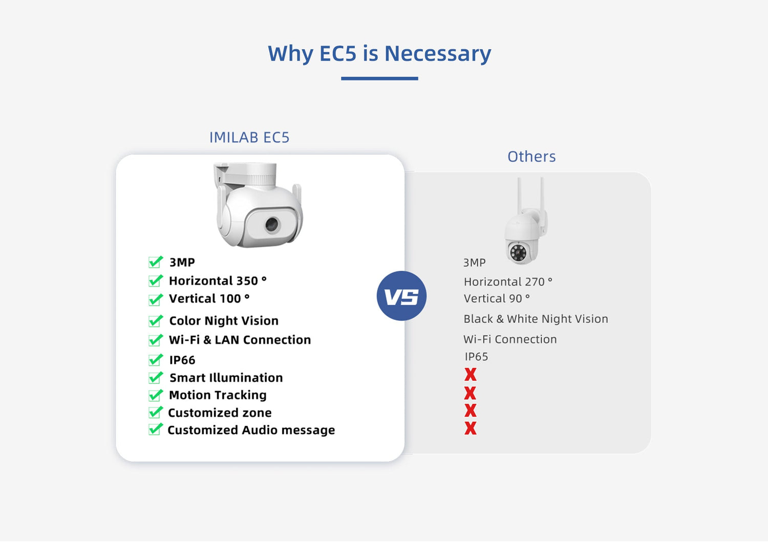 The IMILAB EC5 is built for the outdoors, sporting an impressive IP66 waterproof rating. This means rain or shine, the camera is ready to perform. With its versatile 360° rotation capability, you can seamlessly monitor large areas, tracking movement effortlessly around your property.