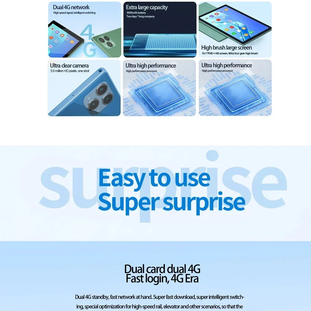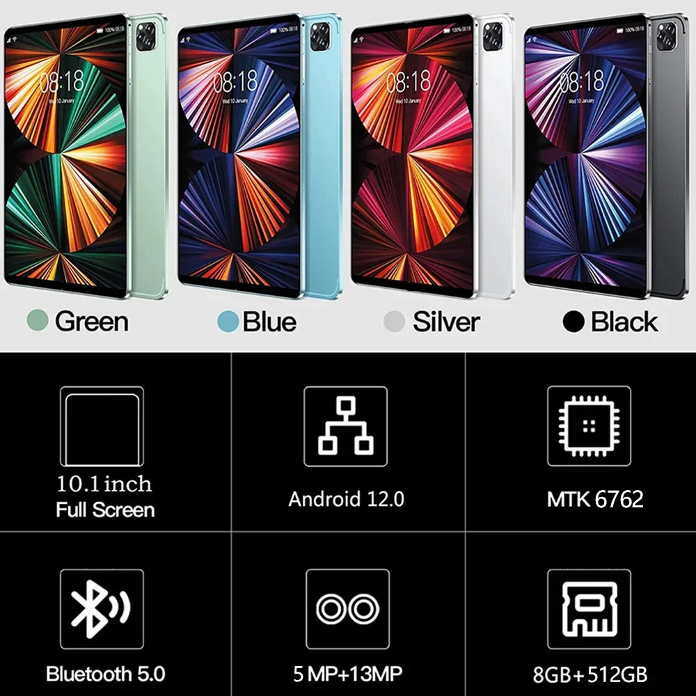 Nueva tableta Android 5G Pad Pro de 10,1 pulgadas con 8 GB de RAM, 512 GB de ROM, ocho núcleos, soporte para llamadas, tarjeta SIM dual, batería de 8000 mAh