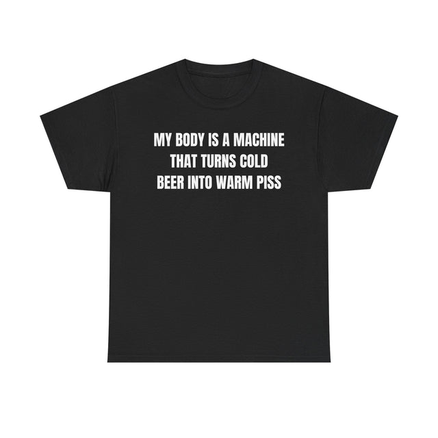 My Body Is A Machine That Turns Cold Beer Into Warm Piss Funny Shirt – Hilarious Drinking Humor Graphic Tee for Men & Women