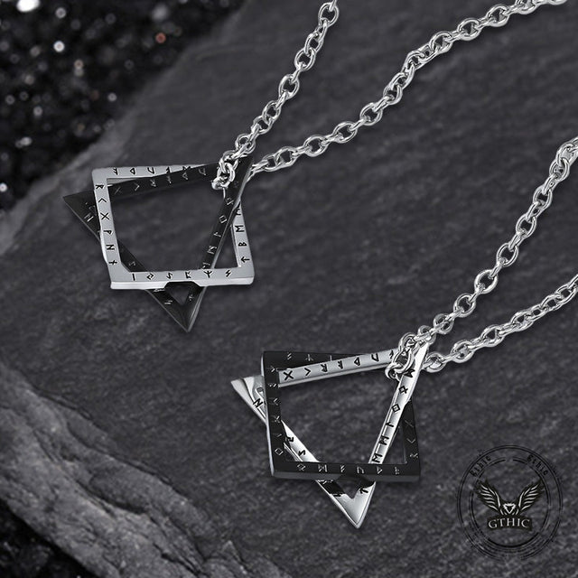 Triangle Geometric Viking Runes Stainless Steel Pendant