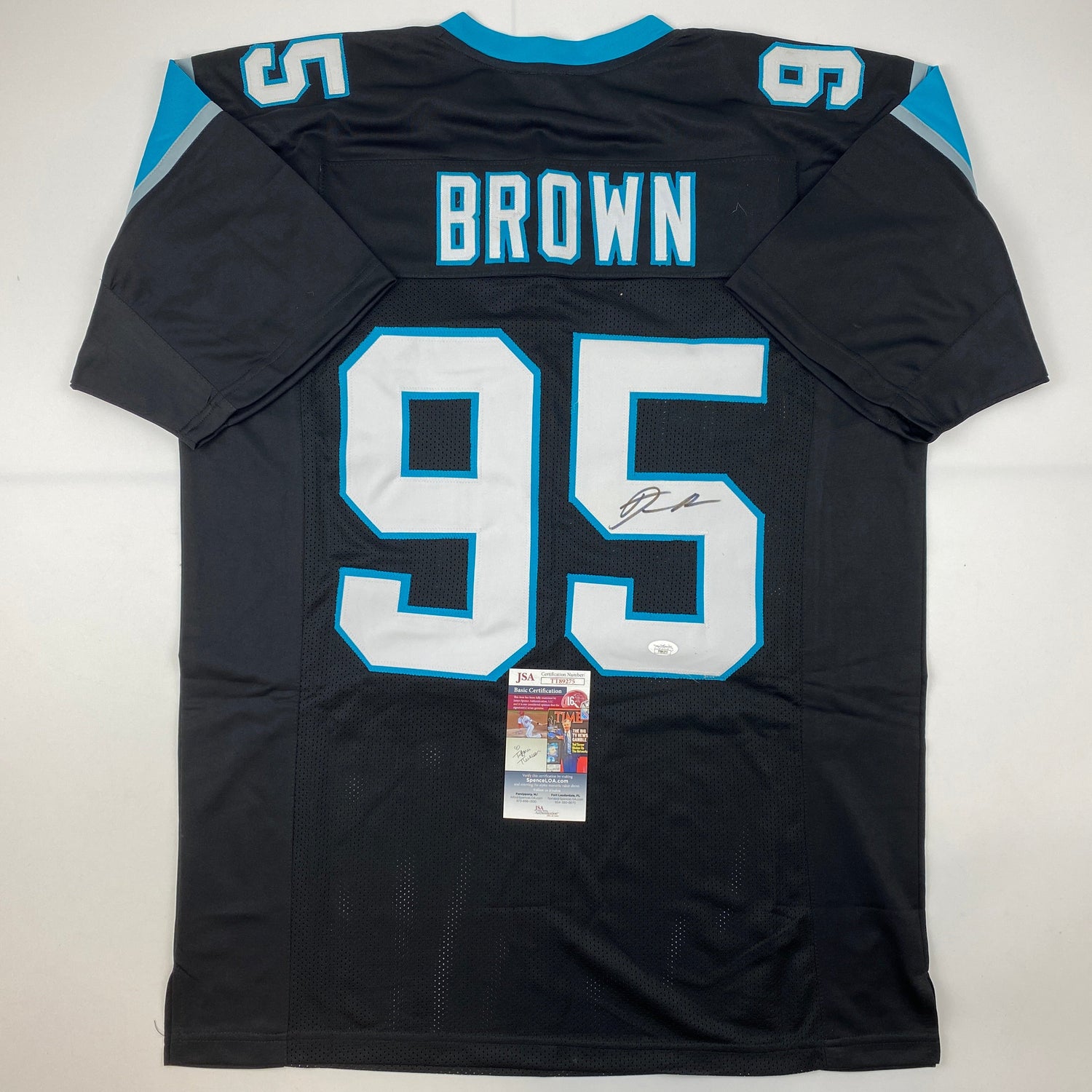 Camiseta de fútbol americano negra de Carolina de Derrick Brown autografiada y firmada por JSA COA