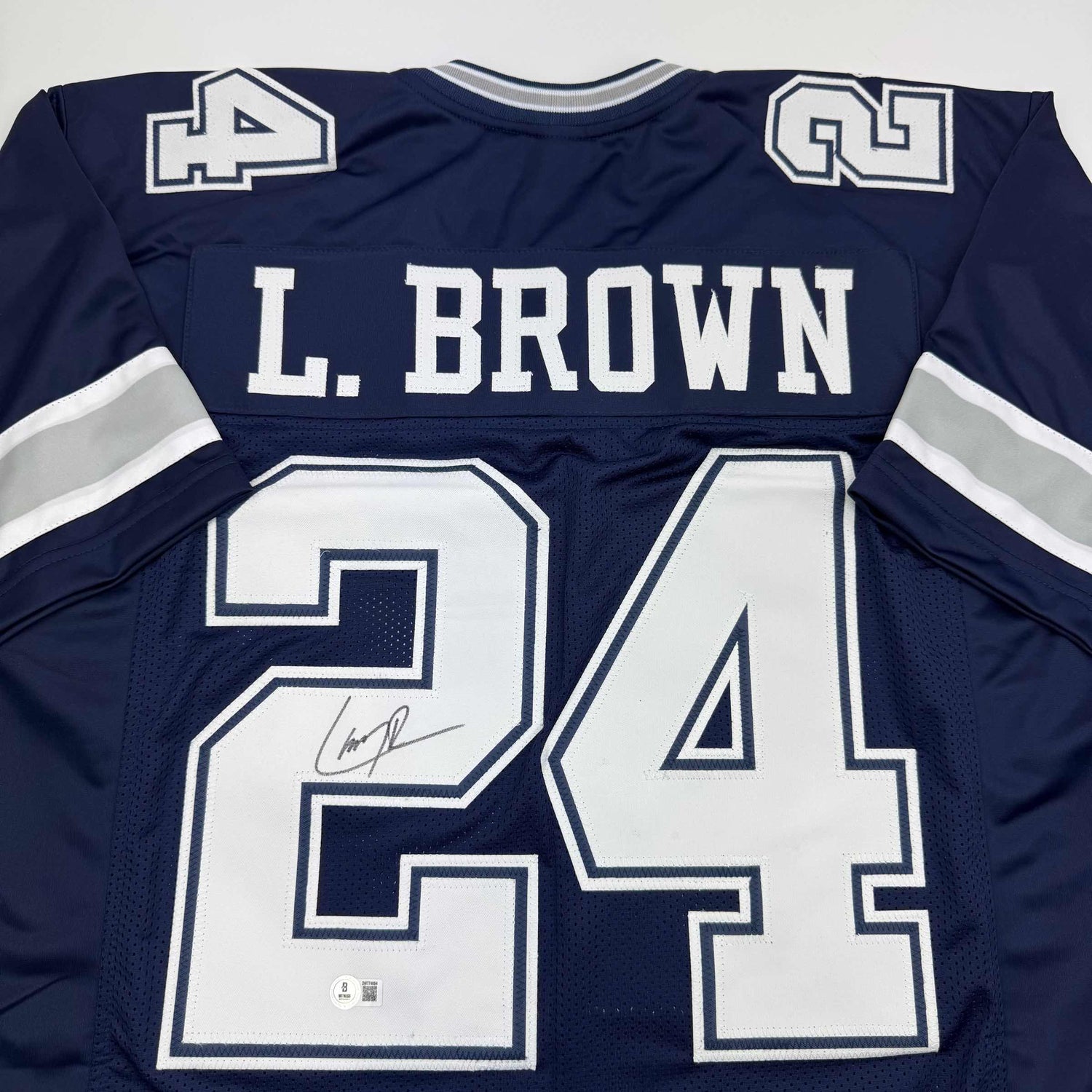 Camiseta de fútbol azul de Dallas de Larry Brown autografiada/firmada Beckett BAS COA