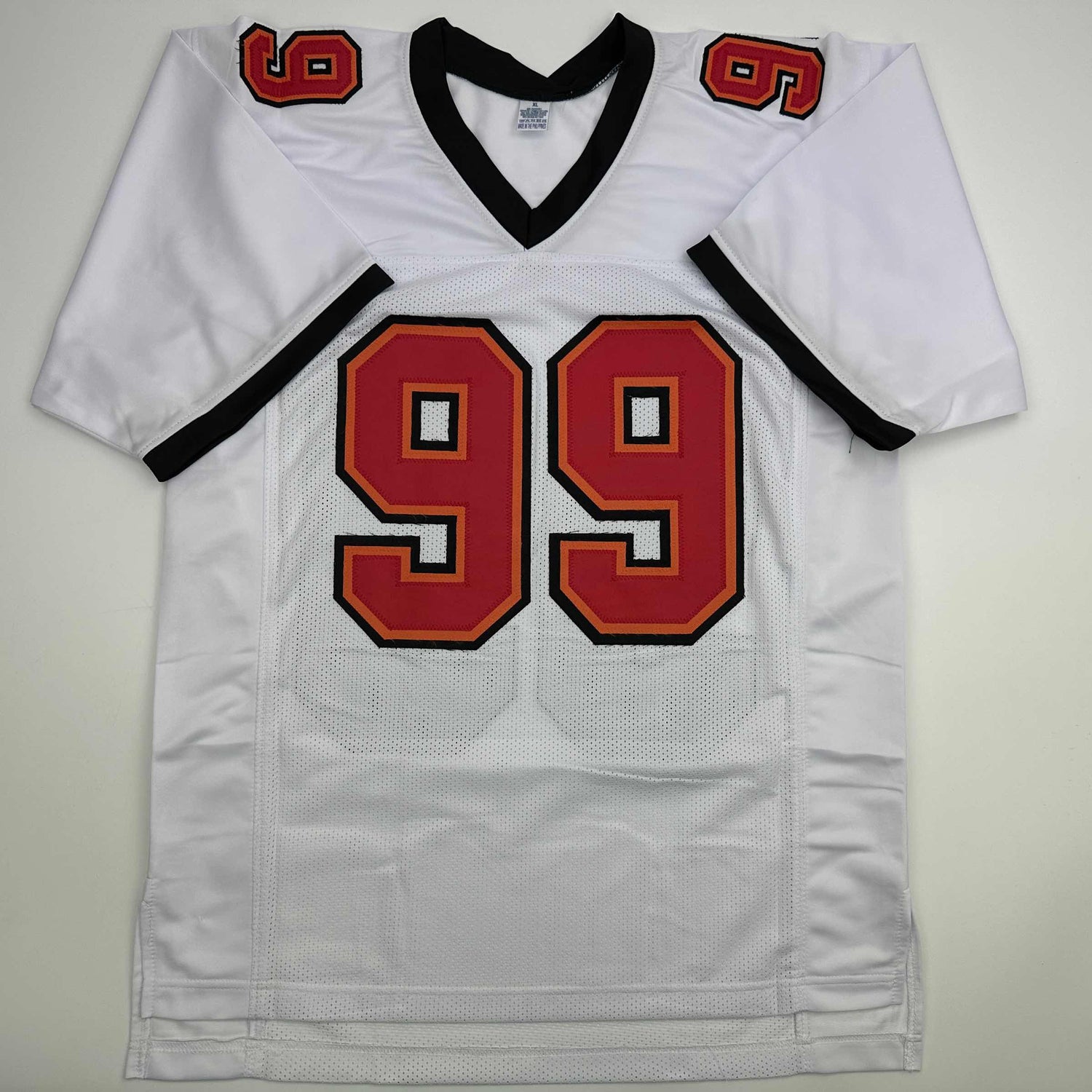 Camiseta de fútbol americano blanca de Tampa Bay autografiada/firmada por Warren Sapp, HOF 13, Beckett BAS COA