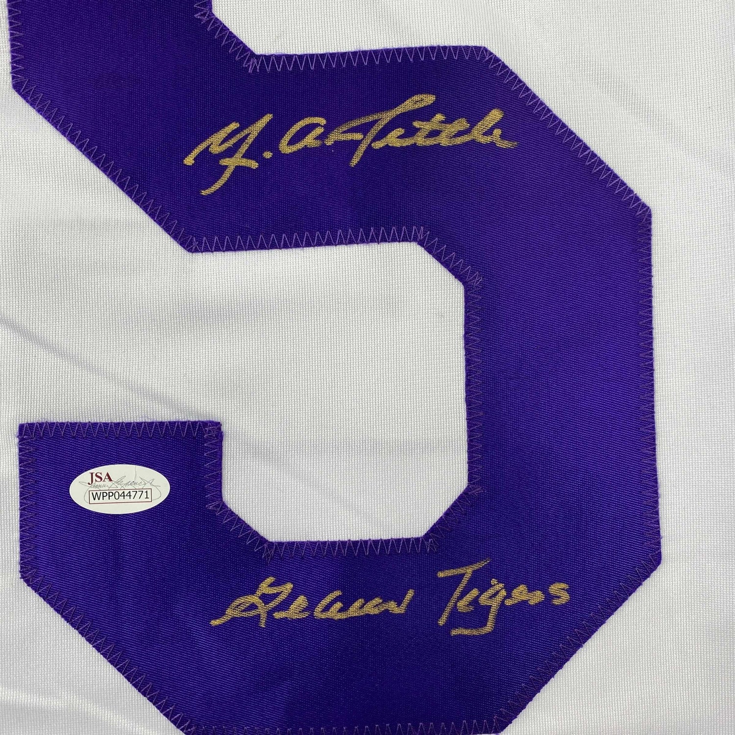 Camiseta de fútbol americano universitario autografiada/firmada YA YA con título inscrito Geaux Tigers LSU blanca JSA COA