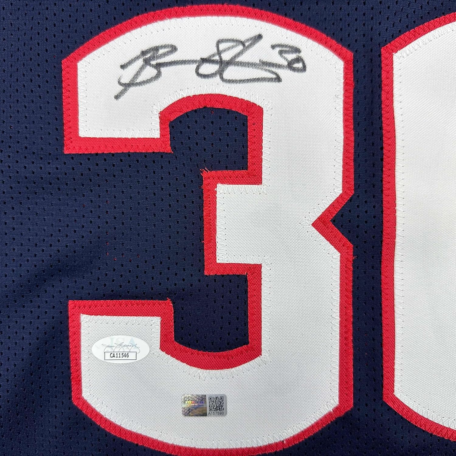 Camiseta de baloncesto universitaria enmarcada, autografiada y firmada por Breanna Stewart, 35 x 39, color azul de UConn Connecticut, JSA COA