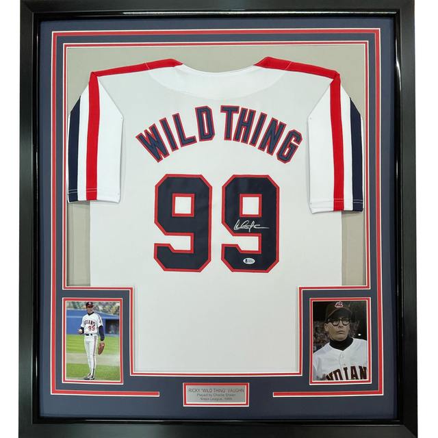 Camiseta de béisbol enmarcada, autografiada y firmada por Charlie Sheen, 35 x 39, de la película Wild Thing, Ricky Vaughn, de las Grandes Ligas, JSA COA