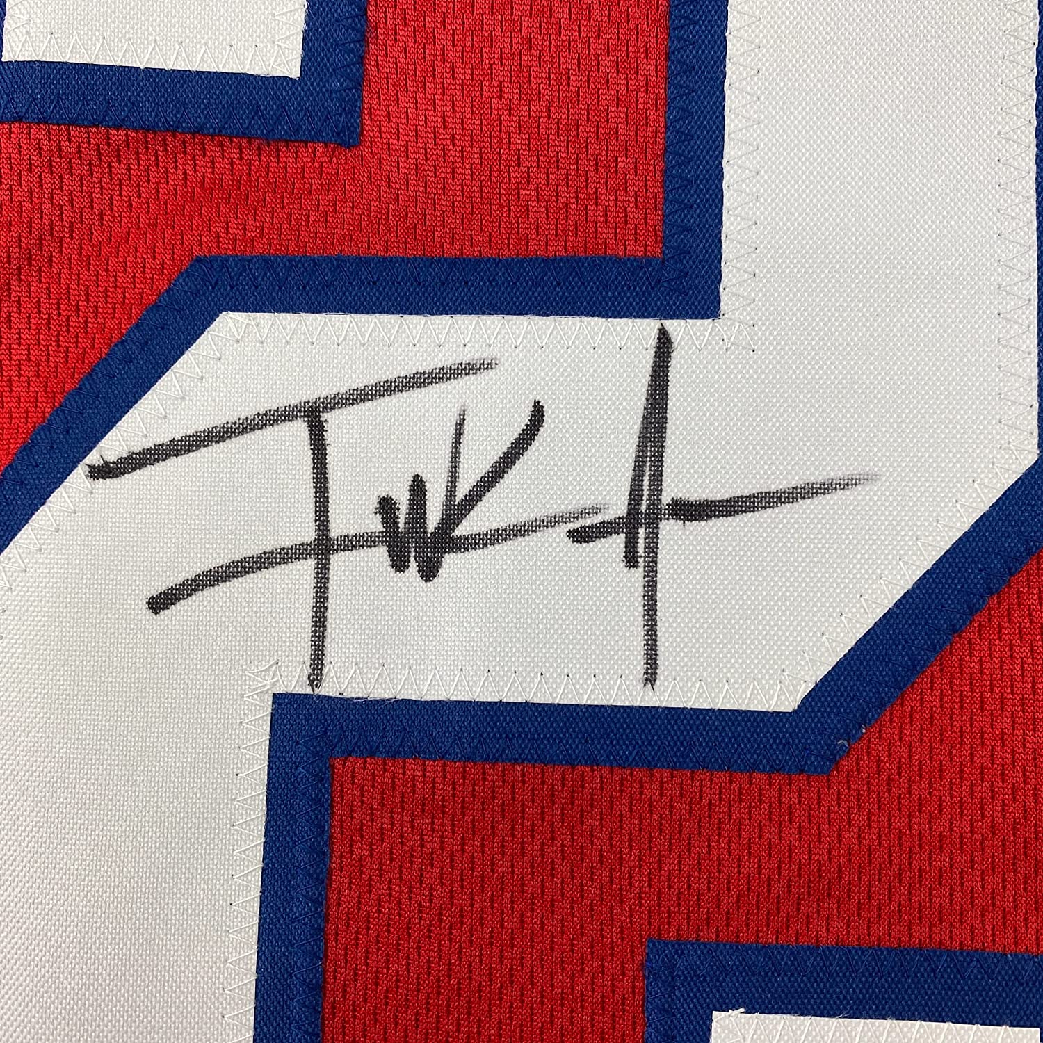 Camiseta de fútbol americano enmarcada, autografiada y firmada por Frank Gore, 35 x 39, color rojo búfalo, JSA COA
