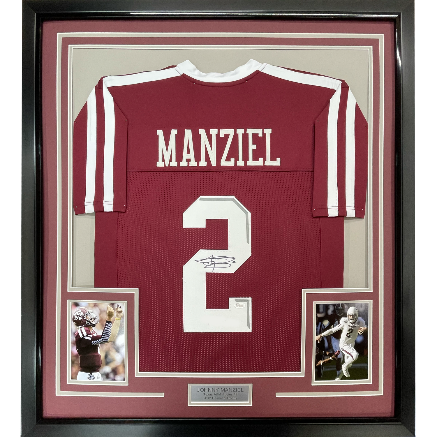 Camiseta de fútbol americano universitario Texas A&M Maroon, enmarcada, autografiada y firmada por Johnny Manziel, 35 x 39, JSA COA