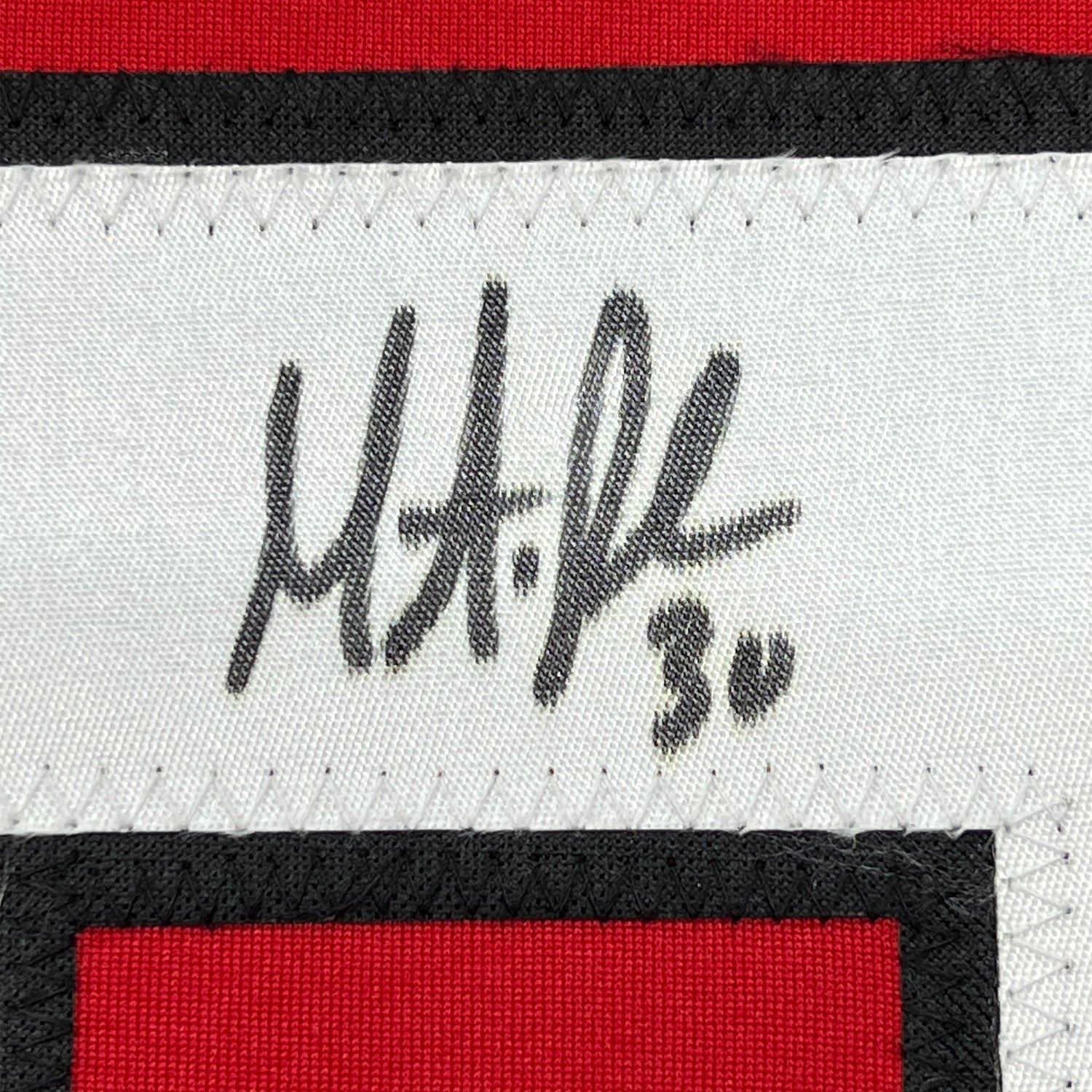 Camiseta de hockey roja de Nueva Jersey, enmarcada, autografiada y firmada por Martin Brodeur, 35 x 39, JSA COA