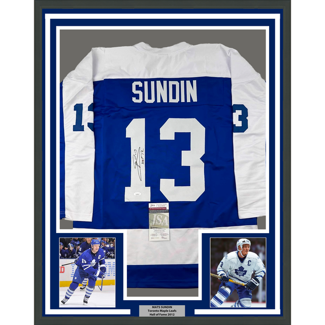 Tapetes enmarcados, autografiados y firmados Sundin 35x39 HOF 12 Toronto Blue Hockey Jersey JSA COA