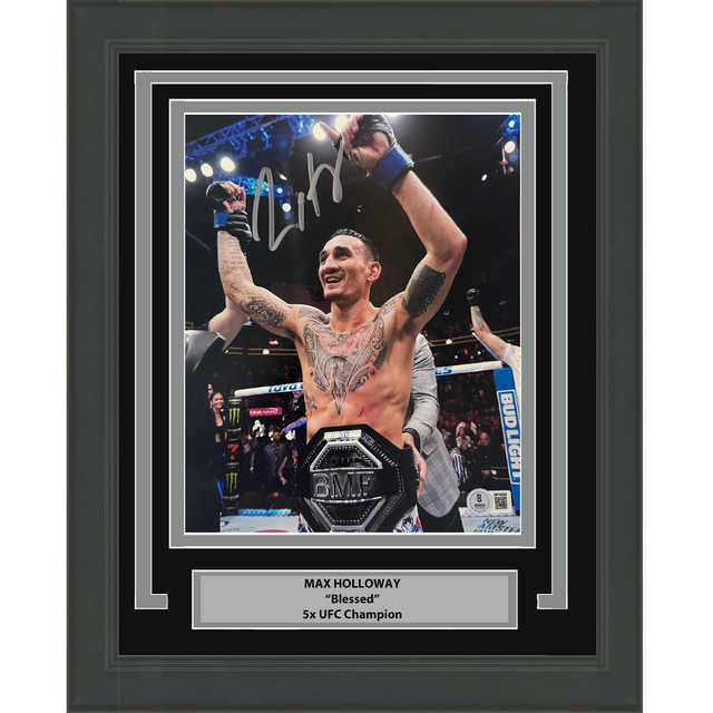 Foto enmarcada y autografiada de Max Holloway, UFC MMA, Black Fighting, 8x10, Beckett BAS COA