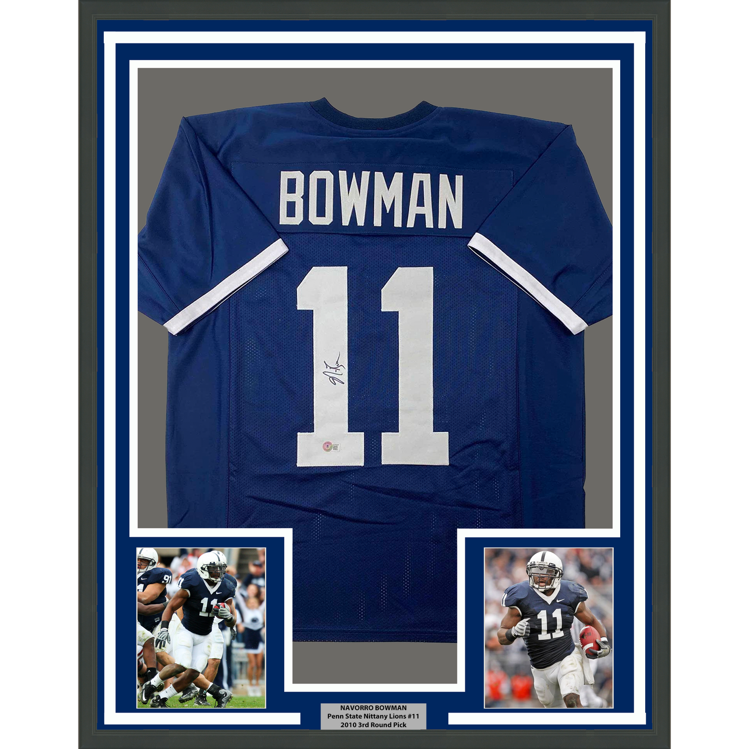 Camiseta de fútbol americano universitario azul de Penn State, enmarcada, autografiada y firmada por NaVorro Bowman, 35 x 39, Beckett BAS COA