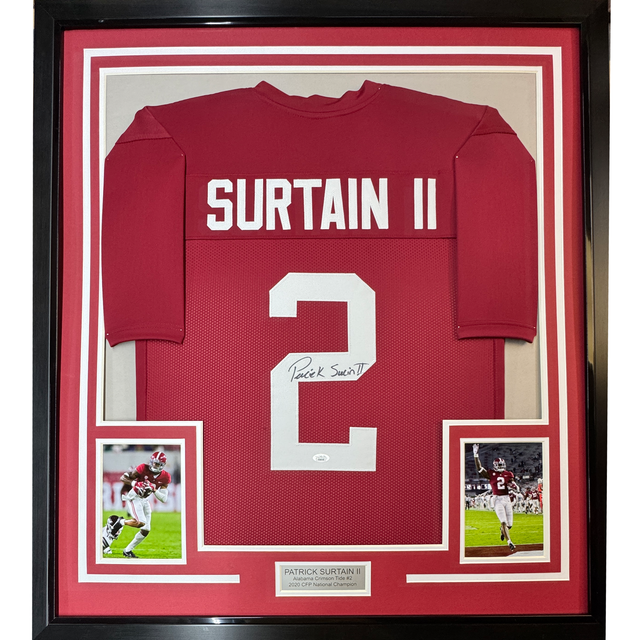 Camiseta de fútbol americano universitario de Alabama Red, enmarcada, autografiada y firmada por Patrick Surtain II, 35 x 39, JSA COA