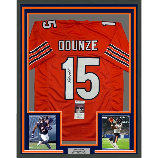 Camiseta de fútbol naranja de Chicago, enmarcada, autografiada y firmada por Rome Odunze, 35 x 39, JSA COA