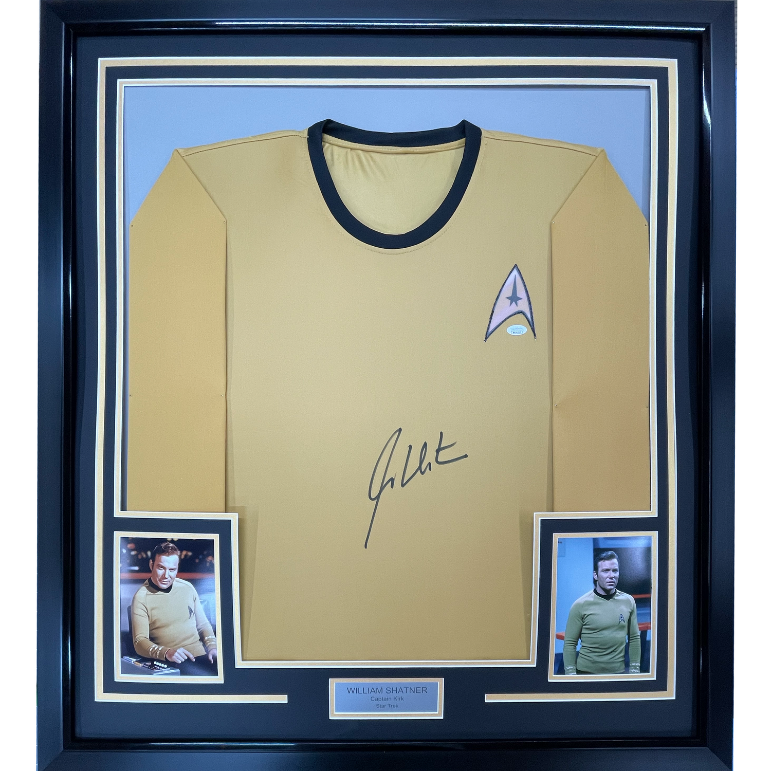 Camisa/uniforme del Capitán Kirk de Star Trek, enmarcada, autografiada y firmada por William Shatner, 35 x 39, JSA COA
