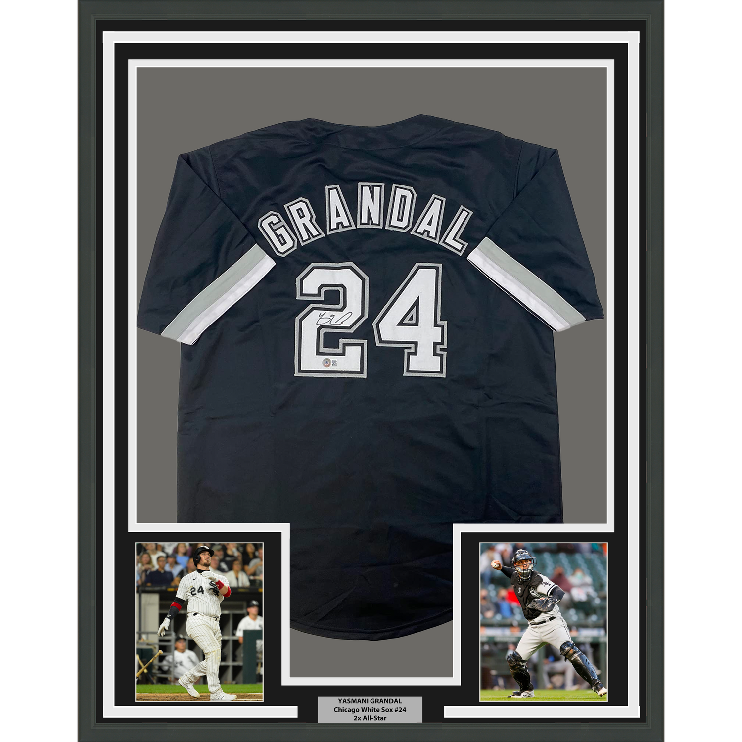 Camiseta de béisbol negra de Chicago Beckett BAS COA enmarcada, autografiada y firmada por Yasmani Grandal, 35 x 39
