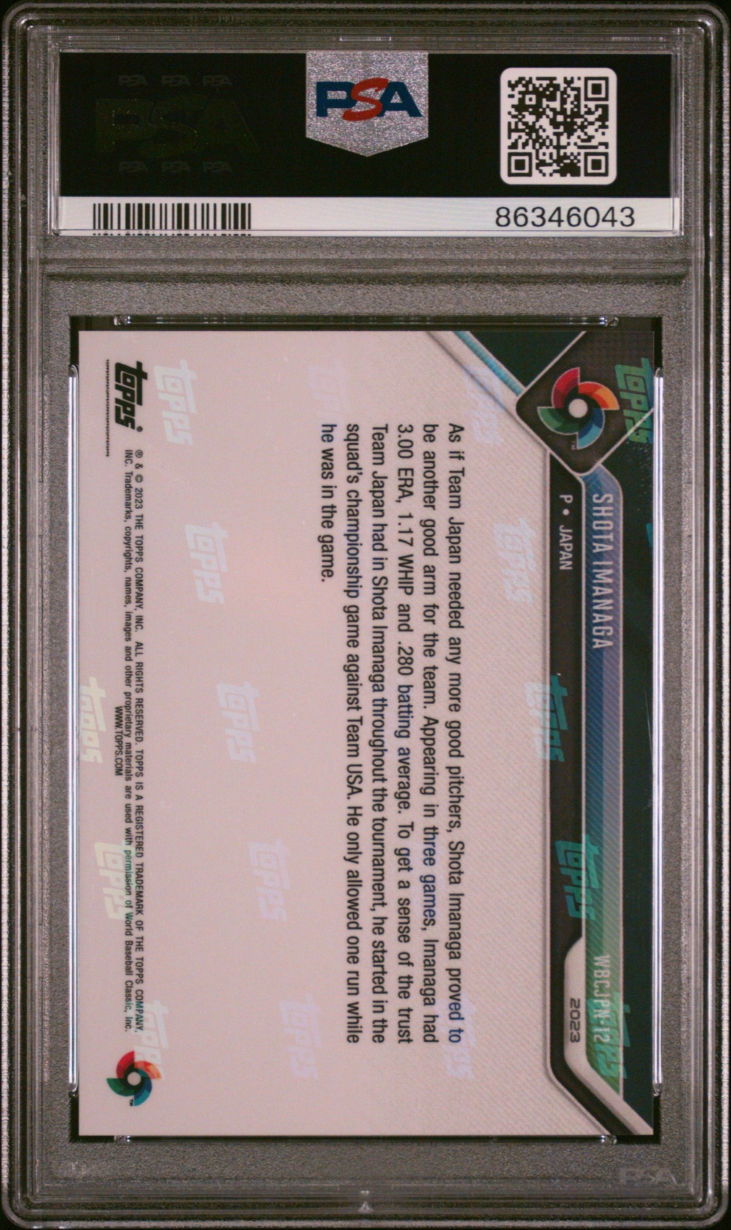 Tarjeta de béisbol RC de novato del equipo de campeones del WBC, clasificada 2023 Topps Now Shota Imanaga #WBCJPN12, PSA 10 Gem Mint