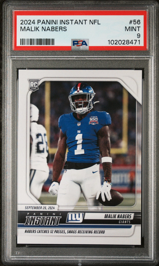 Graded 2024 Panini Instant NFL Malik Nabers #56 Rookie RC Football Card PSA 9 Mint