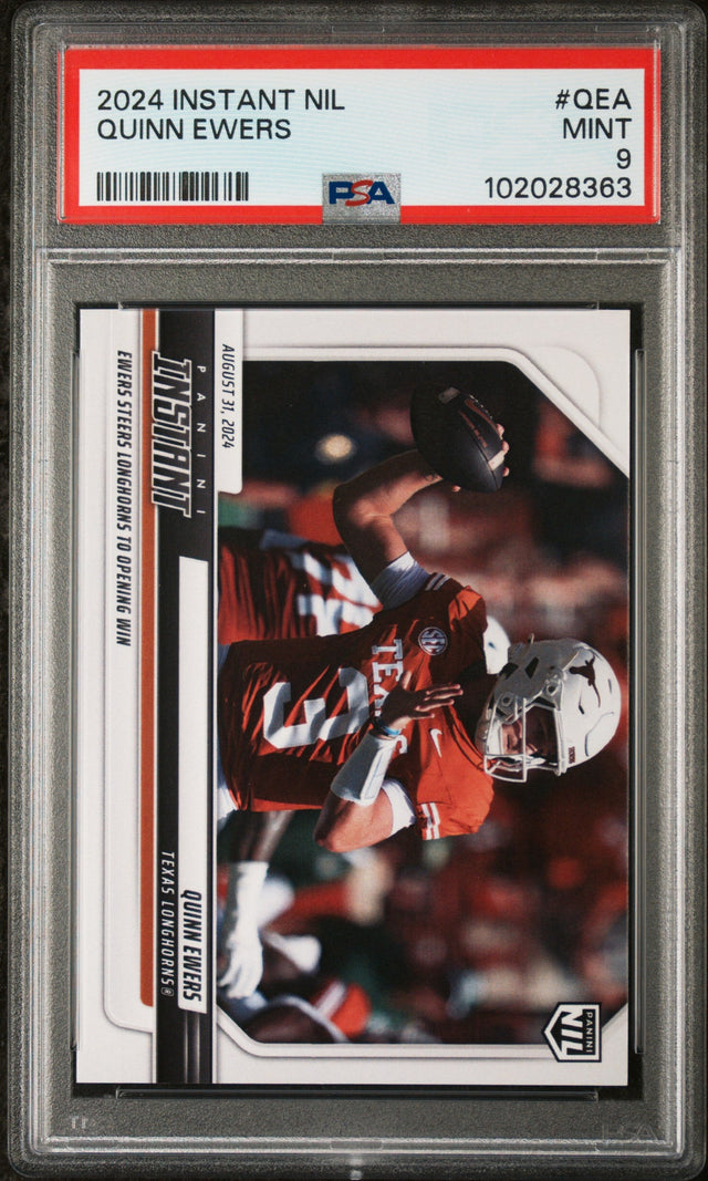 Tarjeta de fútbol RC Quinn Ewers #QEA Rookie de Panini Instant NIL 2024 PSA 9 Mint