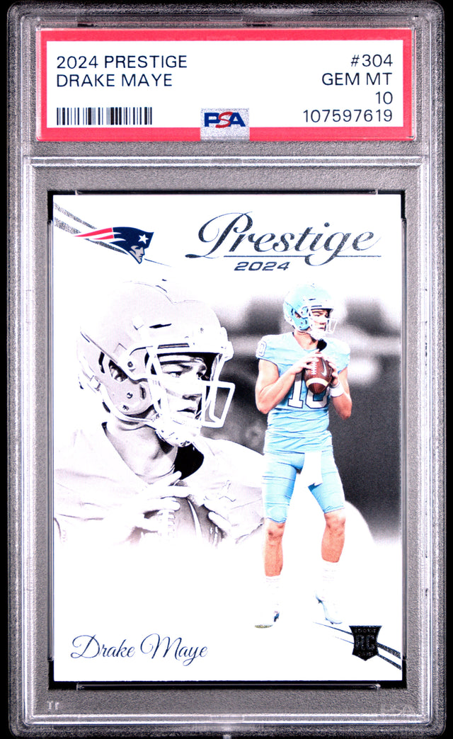 Tarjeta de fútbol Panini Prestige Drake Maye n.° 304 Rookie RC, clasificada en 2024, PSA 10 Gem Mint