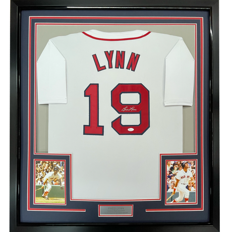 Camiseta de béisbol blanca de Boston, enmarcada...