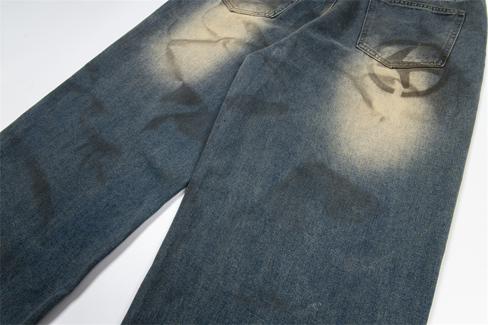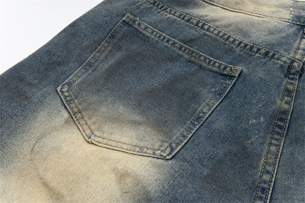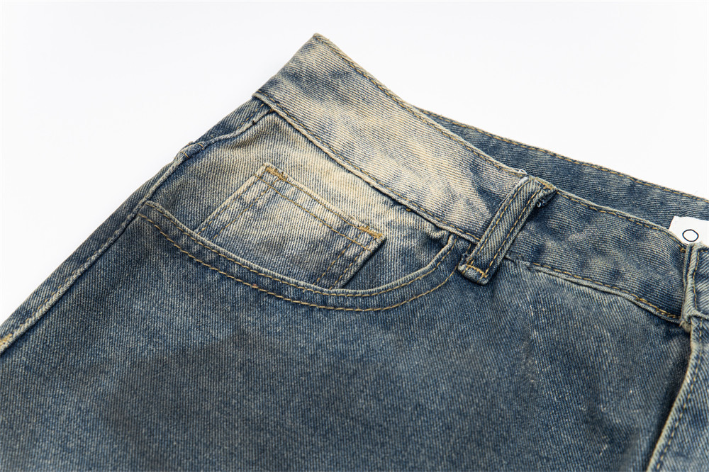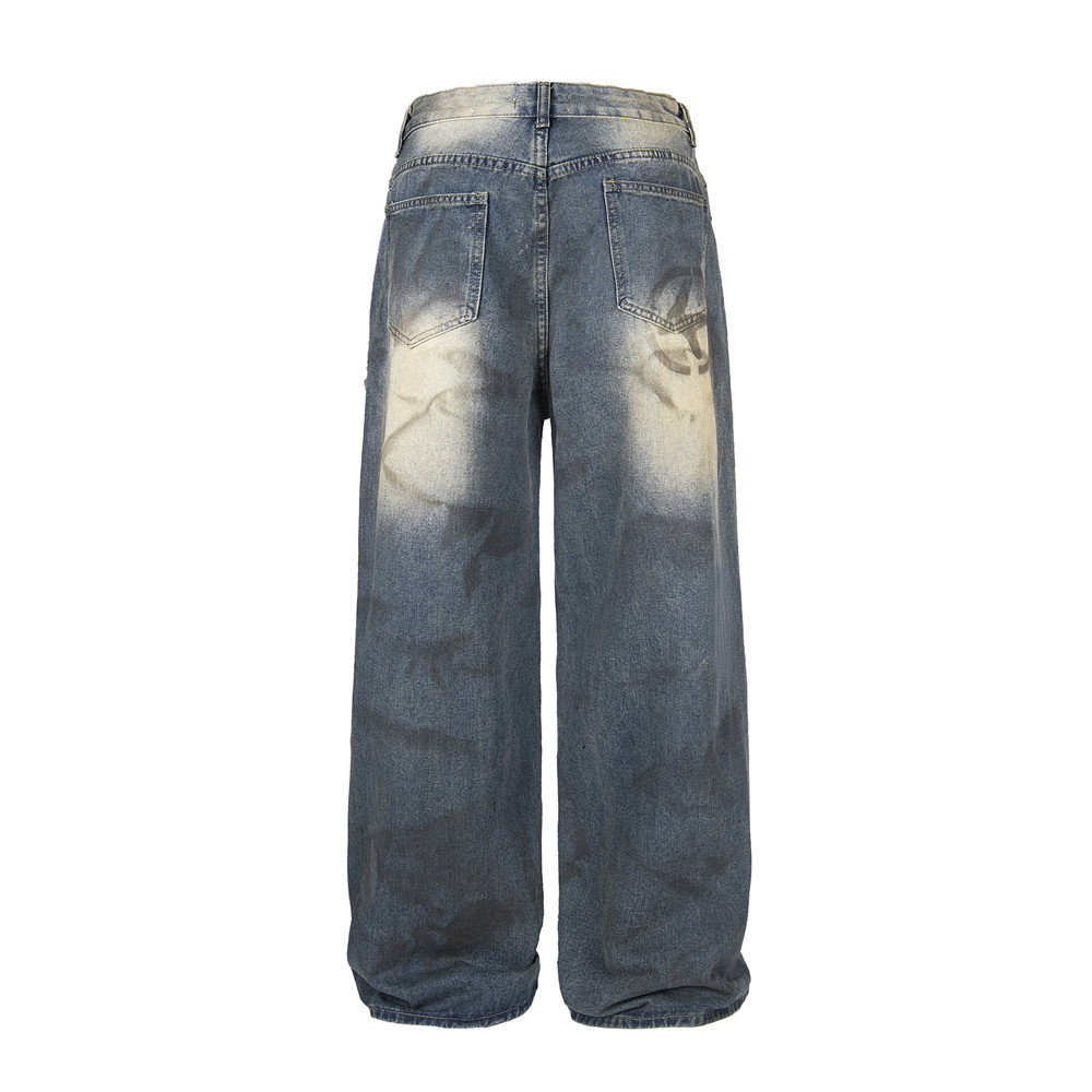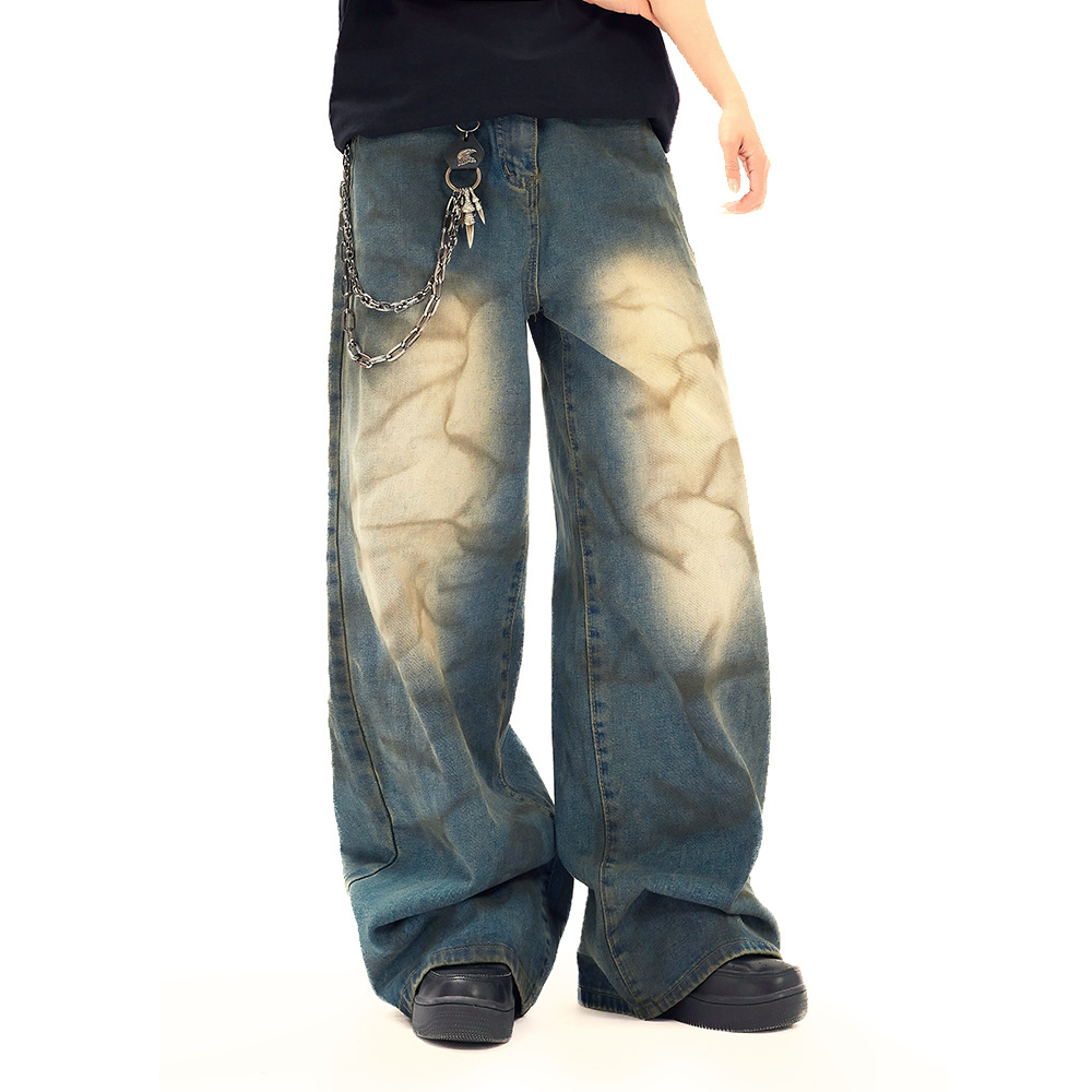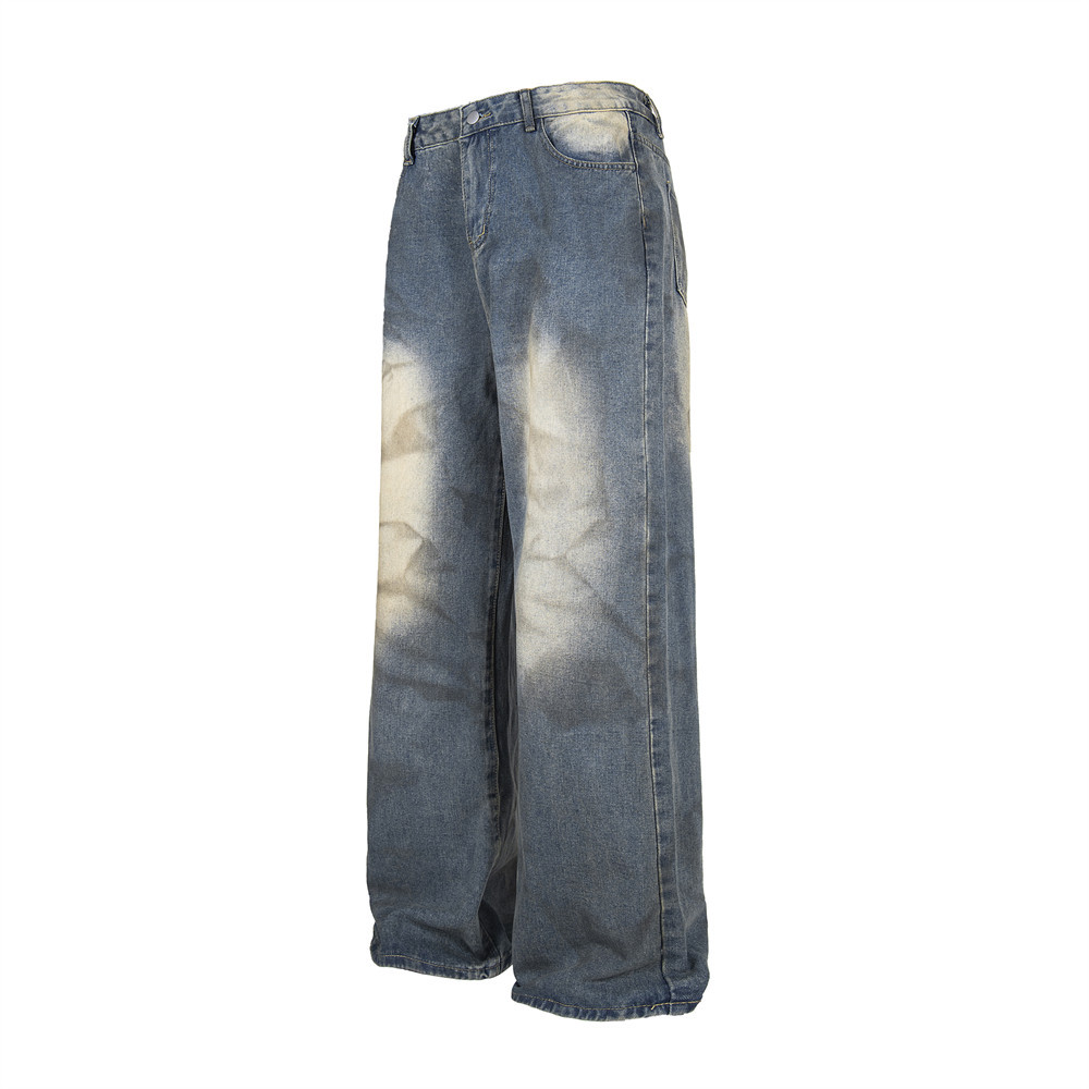 Vaqueros rectos de pierna ancha con efecto desgastado y efecto desgastado para hombre