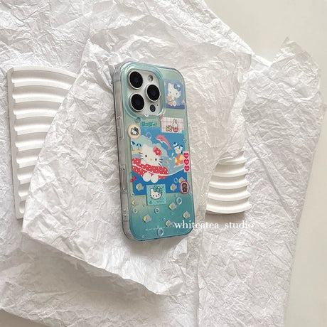 Blue Lovely Hello Kitty Baby Glitter Phone Case
