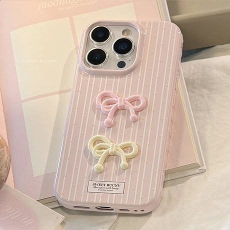 Korean Cute 3D Bowknot Pink Striped Wave Point ...