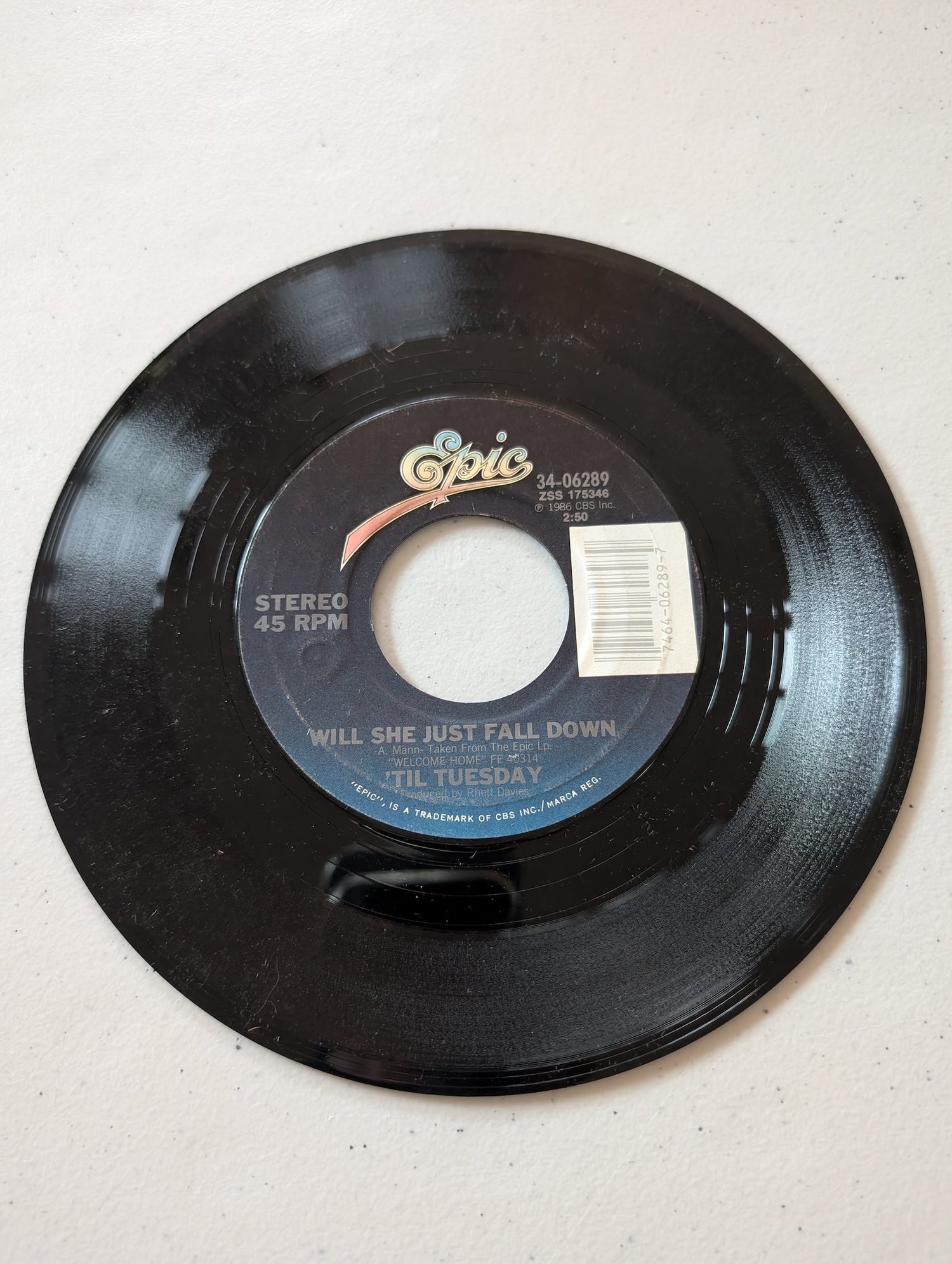 Til Tuesday - What About Love-Will She Just Fall Down (7 in, 45 RPM, Single, Vinyl Record Album)