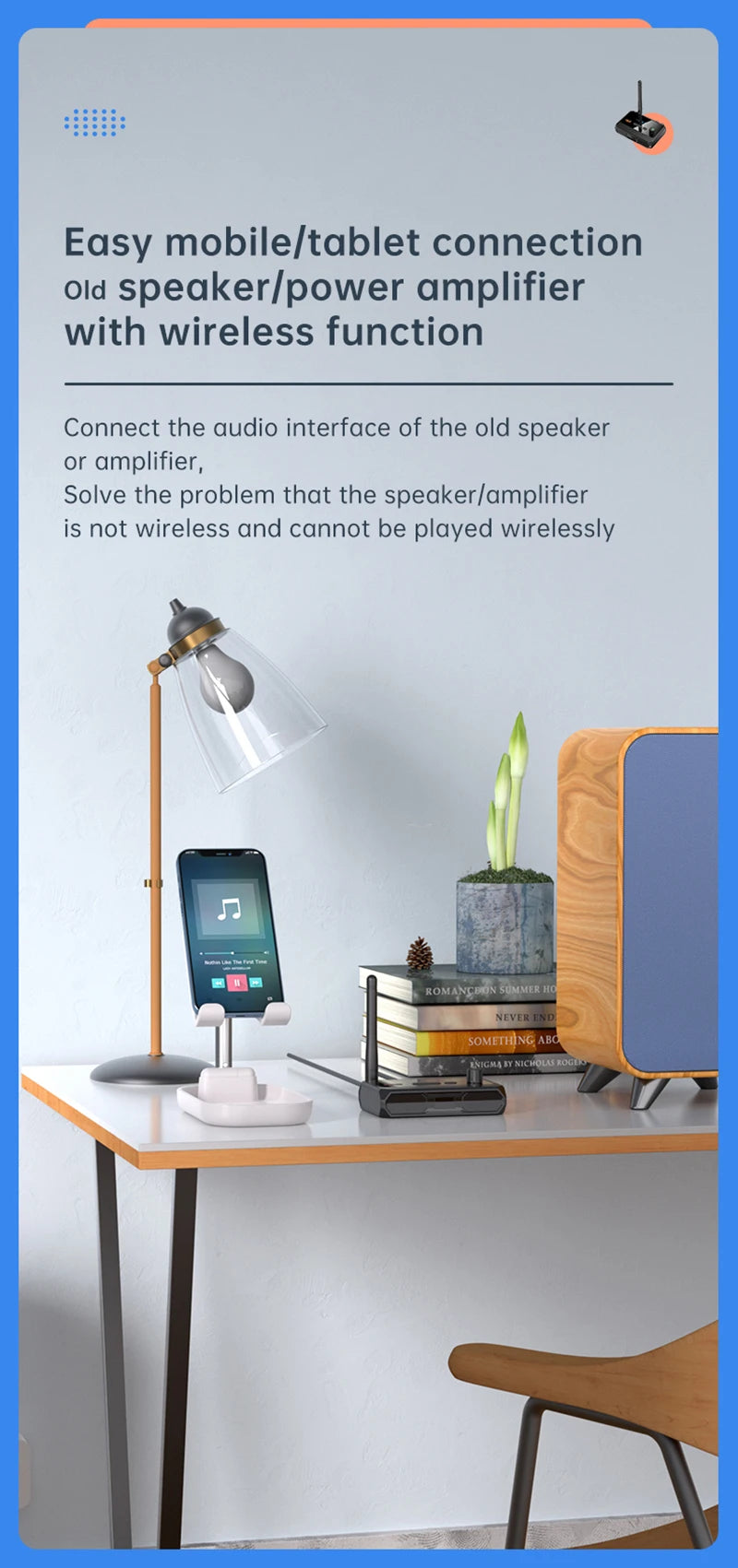 Receptor de audio Bluetooth 5.3 compatible con USB U-Disk Play, adaptador inalámbrico R/L, 2 RCA/3,5 mm AUX/fibra óptica para altavoz de kit de coche.