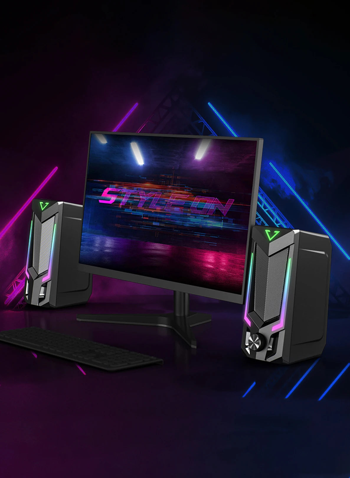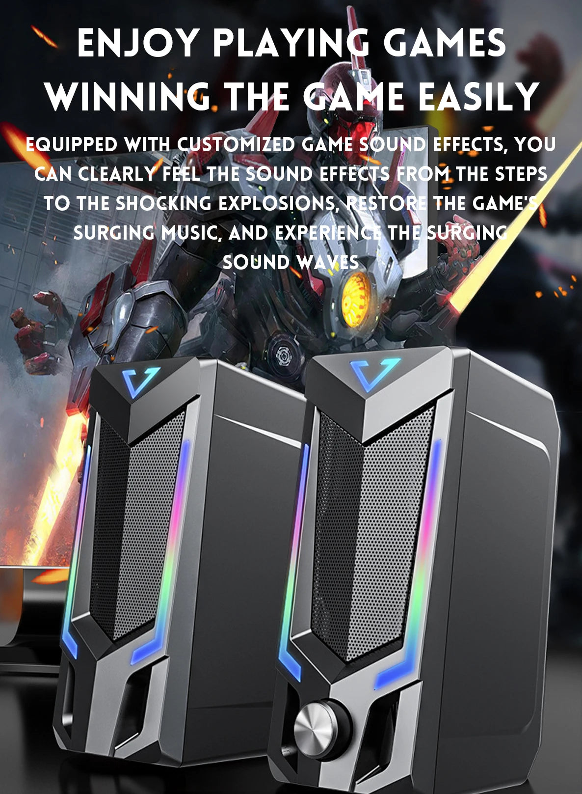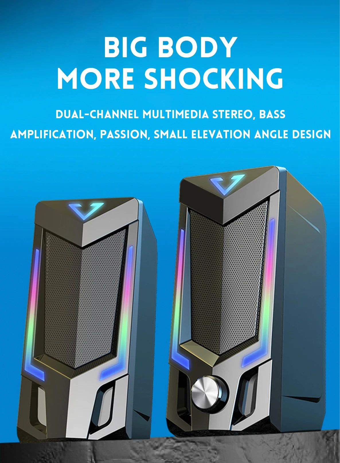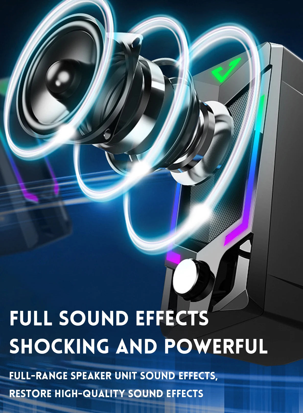Altavoz para computadora Bluetooth RGB, altavoz para computadora de escritorio, altavoz para computadora portátil, altavoz estéreo de escritorio, alimentación por USB, con LED ambiental
