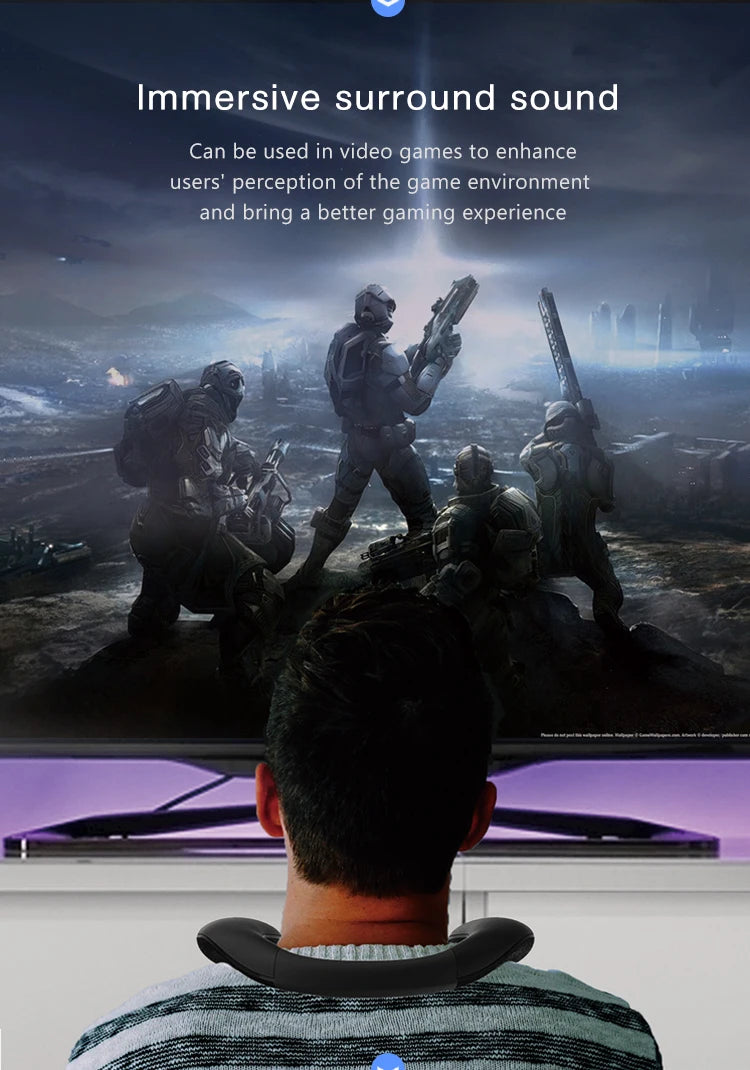 Altavoces Bluetooth con banda para el cuello, 12 horas de música, altavoz portátil inalámbrico, sonido estéreo 3D real, altavoces personales portátiles con micrófono
