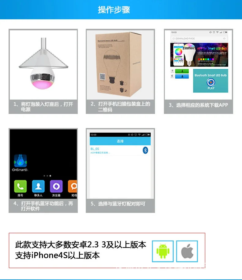 Nueva bombilla inalámbrica E27 con Bluetooth 4.0, altavoz inteligente RGB LED, lámpara de audio, compatible con todos los teléfonos, 110 V-220 V.