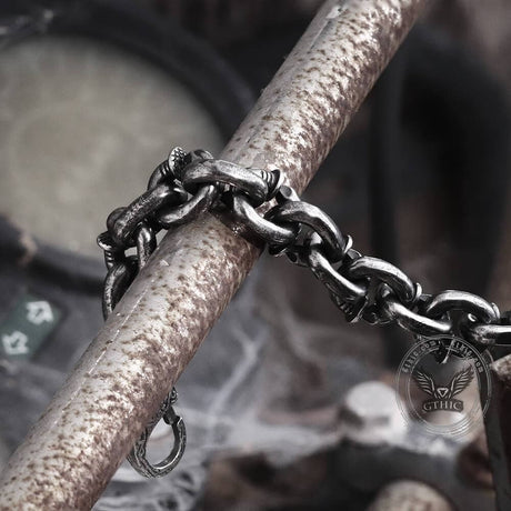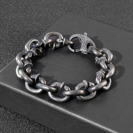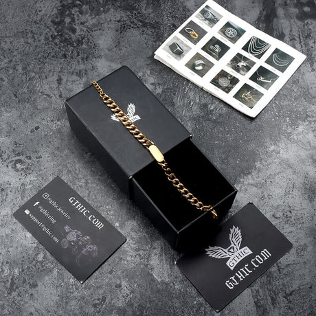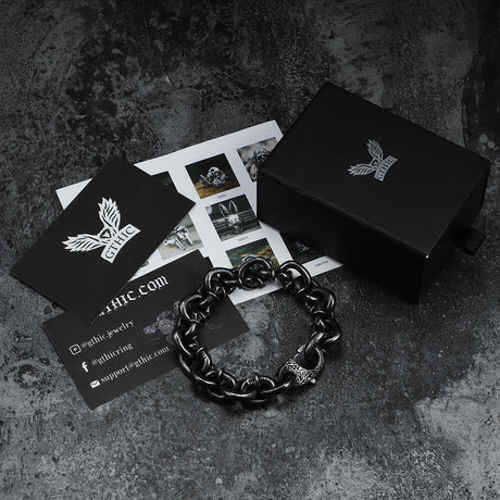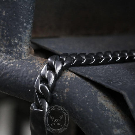 Cuban Chain And Volcanic Rock Skull Bracelet