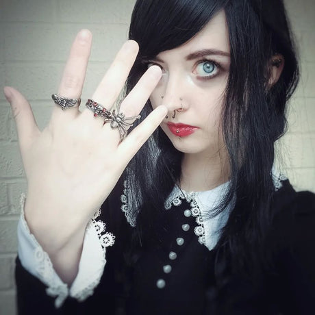 Gothic Ghost Copper Silver Plated Open Ring Set