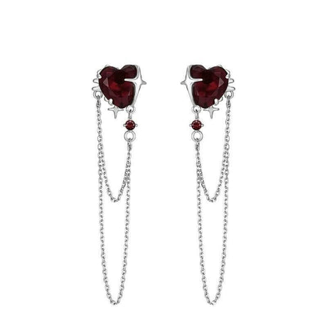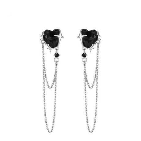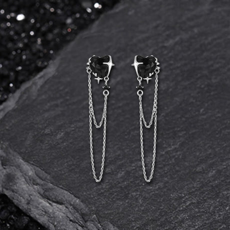 Gothic Heart Tassel Zircon Copper Stud Earrings
