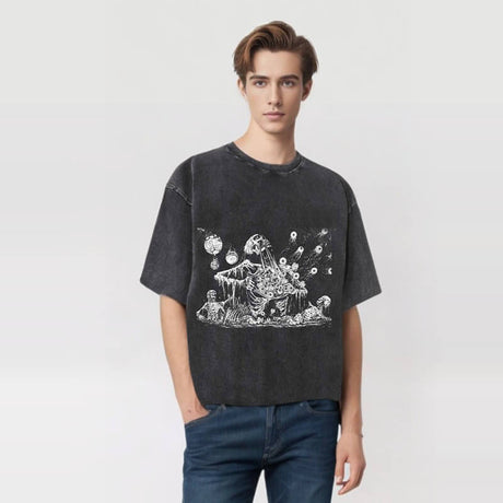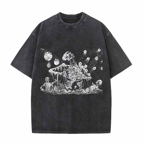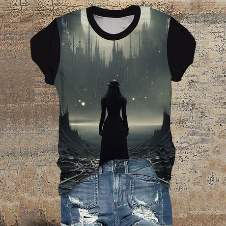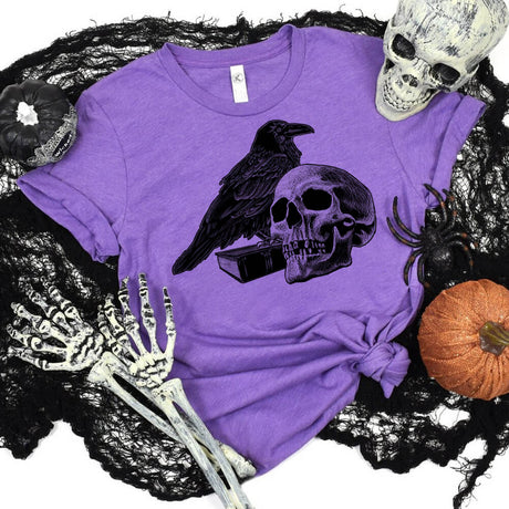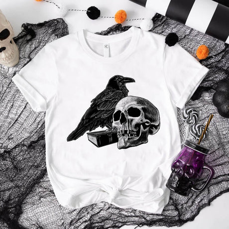 Gothic Raven Skull Round Neck Short Sleeve T-shirt