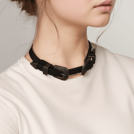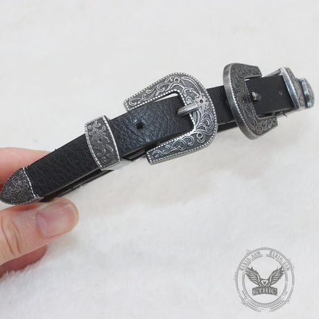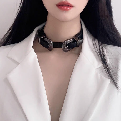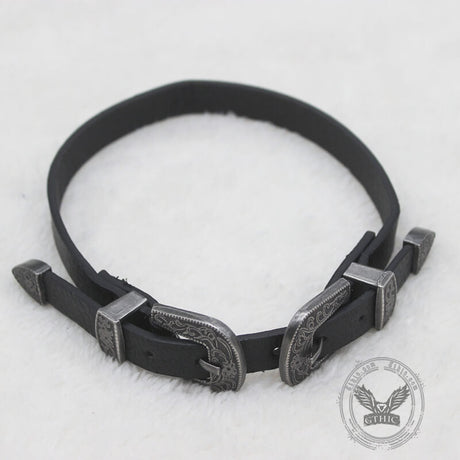 Gothic Floral Pattern Pu Leather Buckle Choker