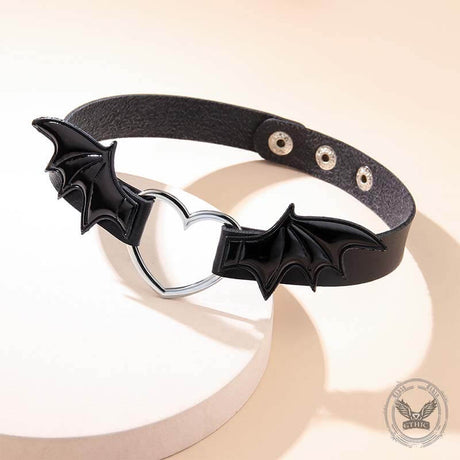 Gothic Heart Bat Wings Alloy PU Leather Choker ...