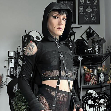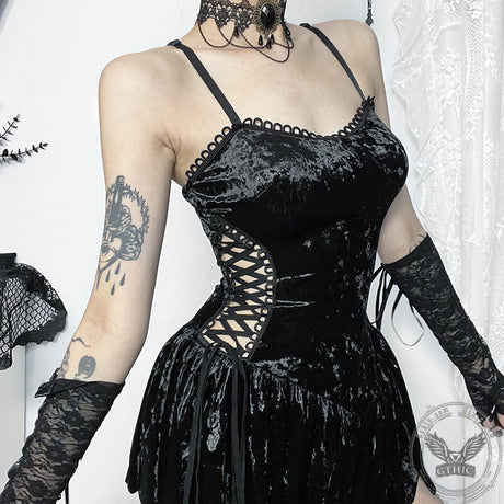 Gothic Mesh Patchwork Flared Sleeve Dress