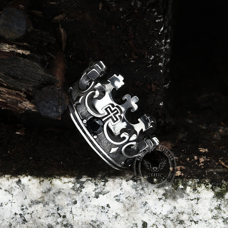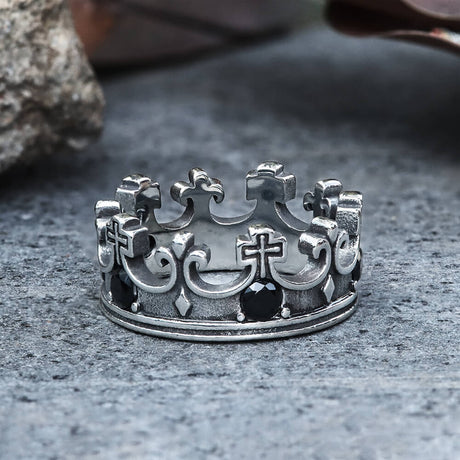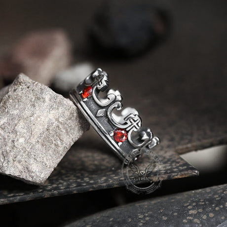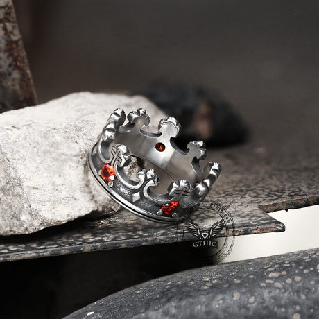 Gothic Roman Gemstone Crown Stainless Steel Ring