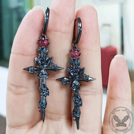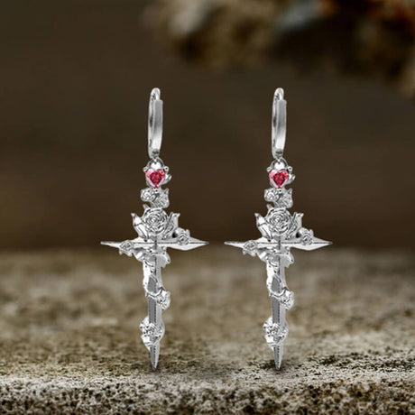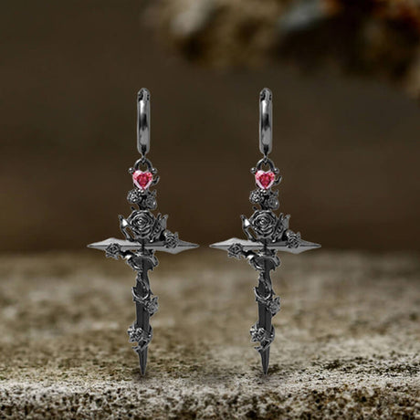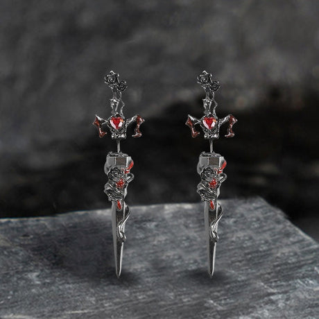 Gothic Rose Sword Stainless Steel Stud Earrings