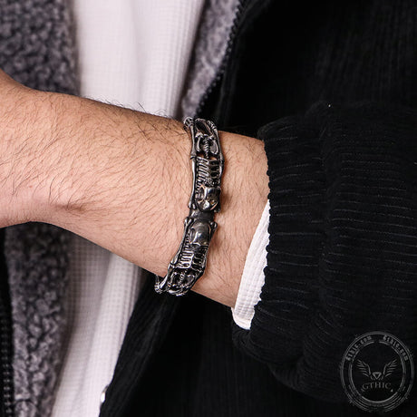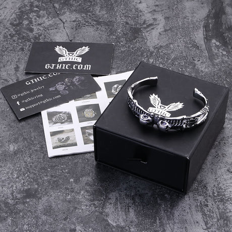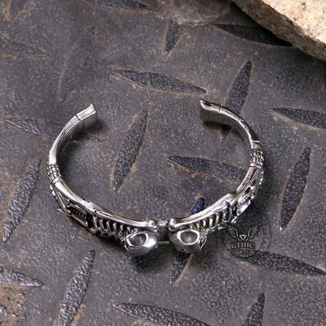 Gothic Skeleton Stainless Steel Skull Bangle Br...