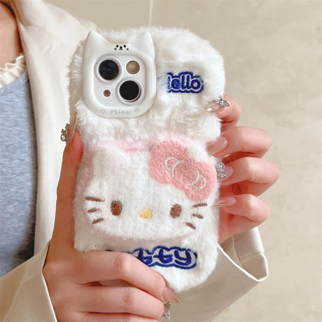 Cartoon Fluffy Hello Kitty Plush Cat Ears Phone...