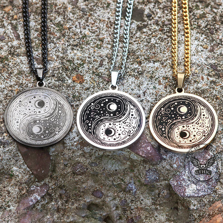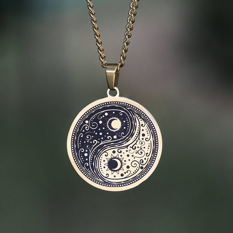 Gothic Yin Yang Mandala Stainless Steel Necklace