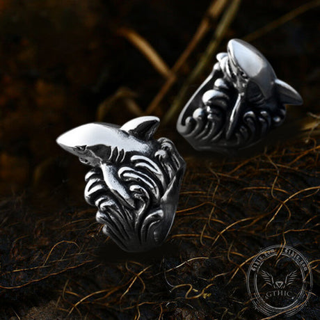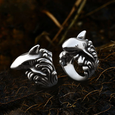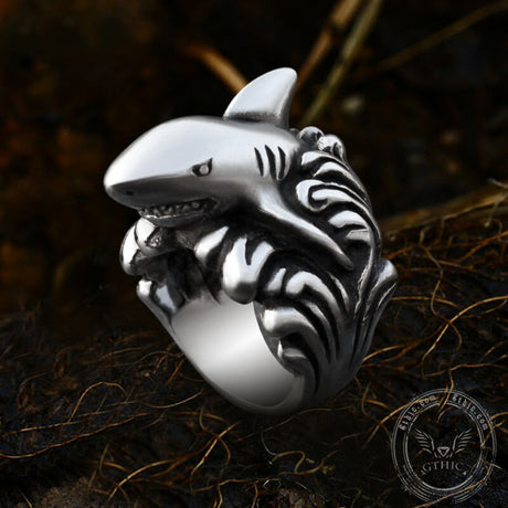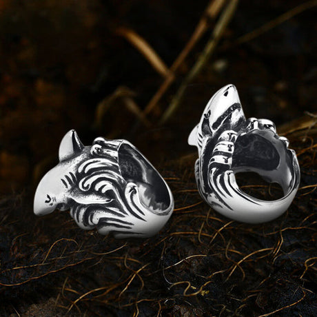 Great Shark Ocean Wave Stainless Steel Animal Ring