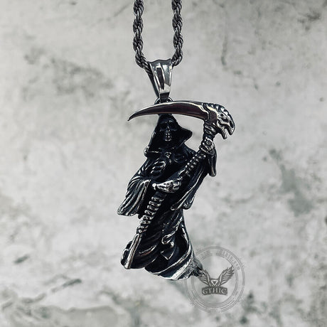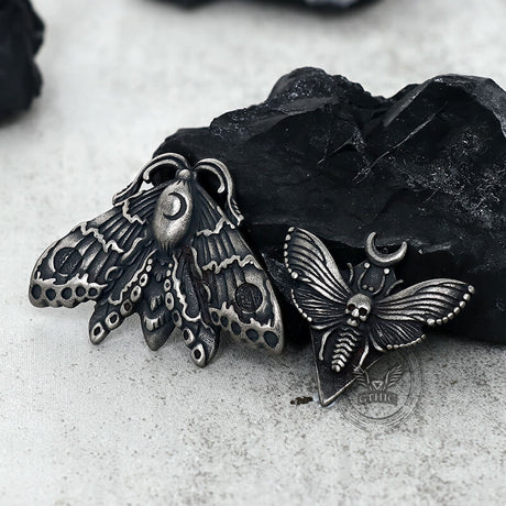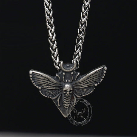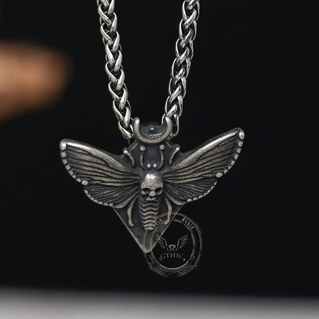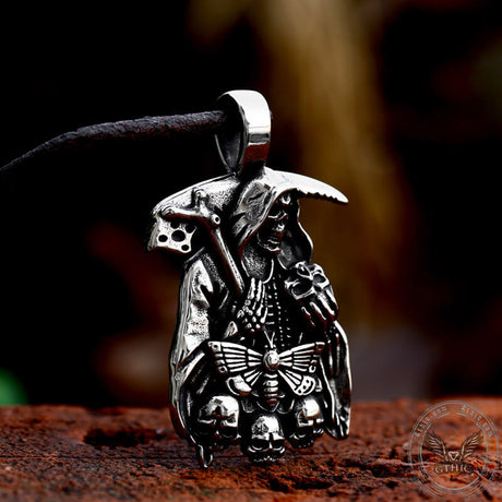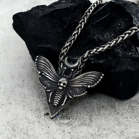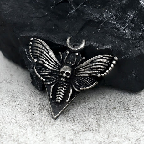 Grim Reaper Moth Stainless Steel Skull Pendant