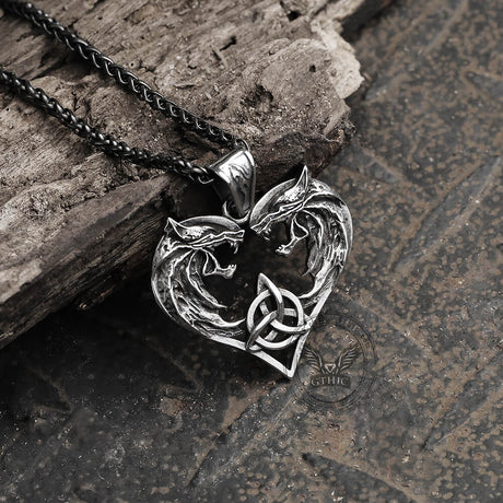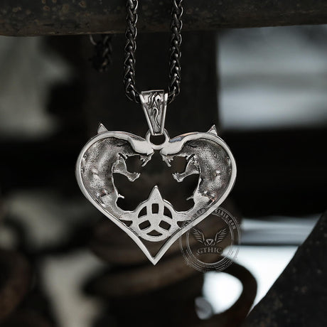 Heart-shaped Fenrir Wolf Stainless Steel Viking...