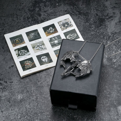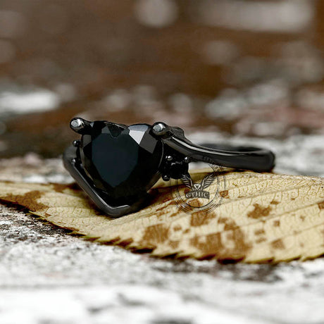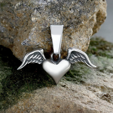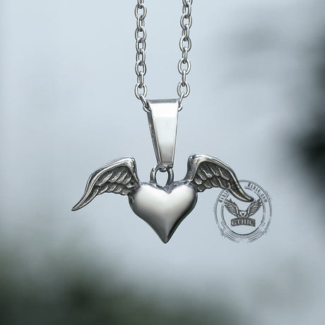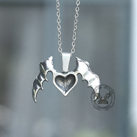 Heart Shape Zircon Devil Wings Stainless Steel ...