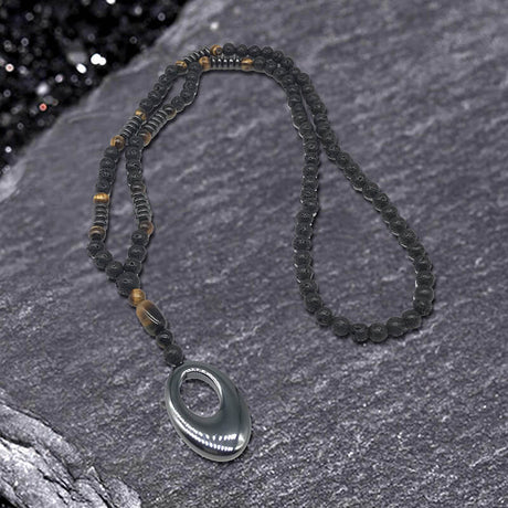 Hollow Round Stone Men’s Motorcycle Rosary Neck...